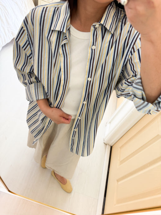 Yellow Blue Brown Striped Button Down Shirt